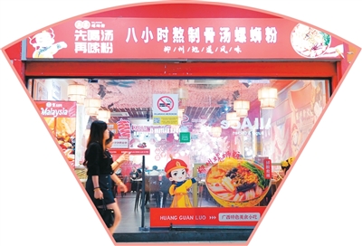 夜幕降临,马来西亚柔佛州新山街头仍旧炽热:螺蛳汤的香味从“柳州仔螺蛳粉”门店飘到街上。店内11名服务员络绎餐桌间,门客们一口螺汤嗍一口粉,鼻翼渗出细密的汗珠。